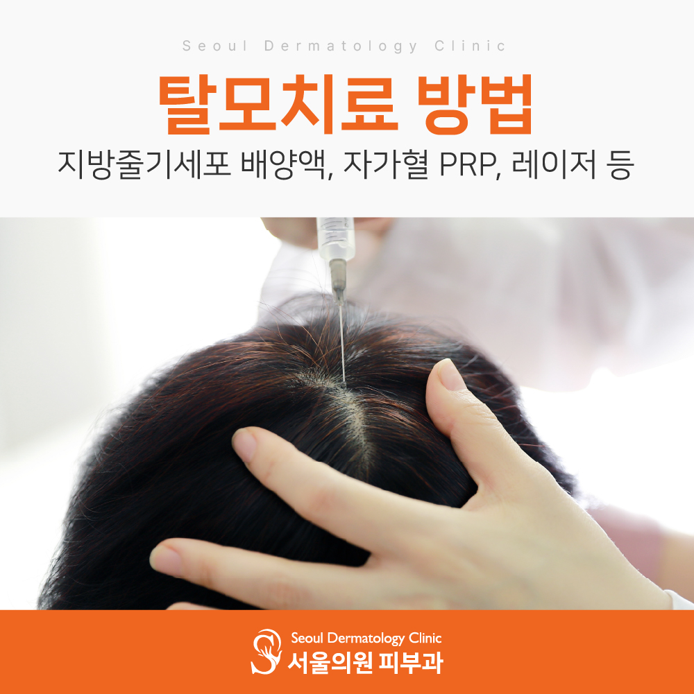 탈모치료 방법은 단순히 약을 먹는 방법 말고도 지방줄기세포 배양액, 자가혈 PRP, 레이저 등 다양한 방식으로 접근이 가능합니다.