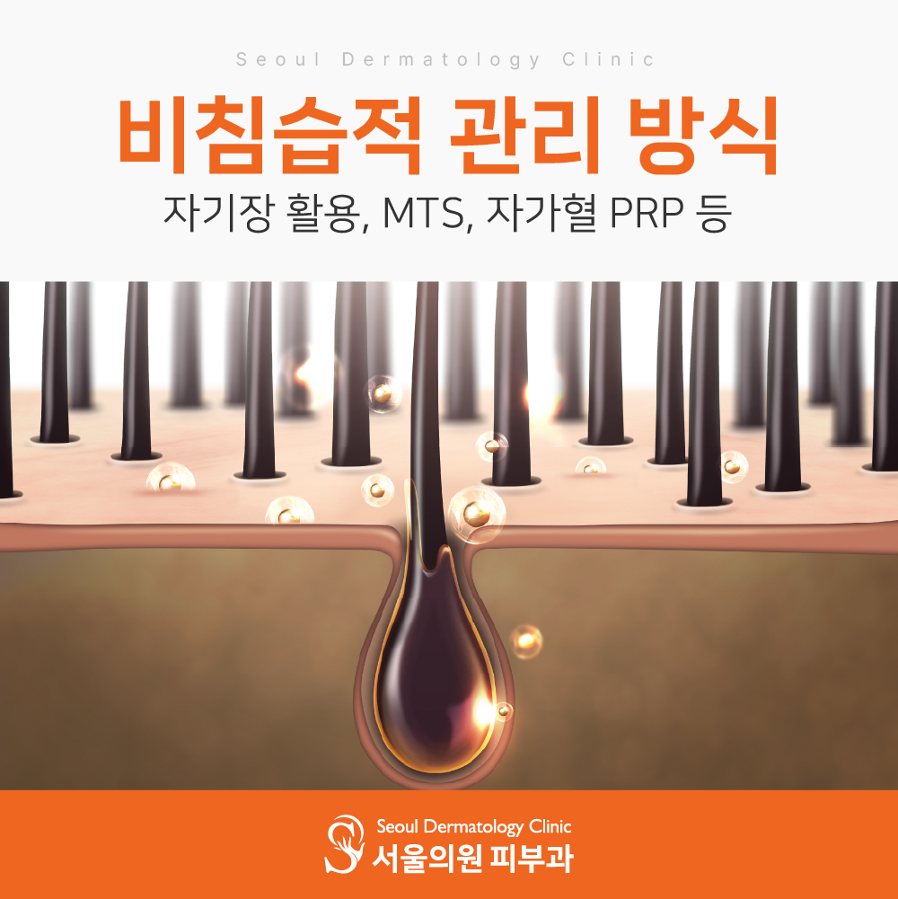 예를 들어, 자기장을 활용해 두피 혈류를 개선하고 모낭세포를 활성화시키는 방식은 최근 들어 주목받는 방법 중 하나입니다. MTS 역시 두피에 미세한 자극을 주어 성장인자와 유효 성분의 침투를 높이는 데 활용되고 있으며, 자가혈에서 추출한 PRP(혈소판 풍부 혈장)를 두피에 도포하거나 주입하여 세포 재생을 유도하는 방법도 있습니다.