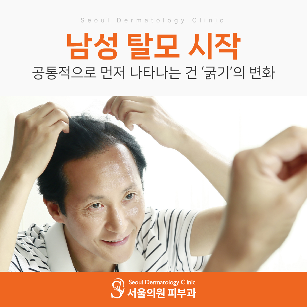 유전과 호르몬의 영향에 더해 외부 환경까지 작용한다면, 남성탈모는 시작과 동시에 개인화된 패턴을 보이기 마련입니다. 대부분은 정수리나 이마 라인의 변화로 시작하지만, 공통적으로 먼저 나타나는 건 ‘굵기’의 변화입니다.