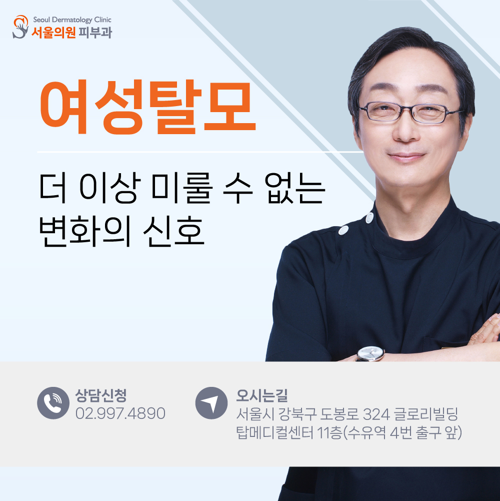 남성의 경우 앞머리나 정수리 등 특정 부위 중심으로 탈모가 진행되지만, 여성탈모는 전체적으로 숱이 줄거나 모발이 가늘어지기 때문에 초기에 자각하기 어렵습니다. 하지만 바로 그 지점에서 중요한 신호를 놓치게 되고, 대처가 늦어진다면 탈모는 더 빠르고 넓게 확산될 수 있습니다.