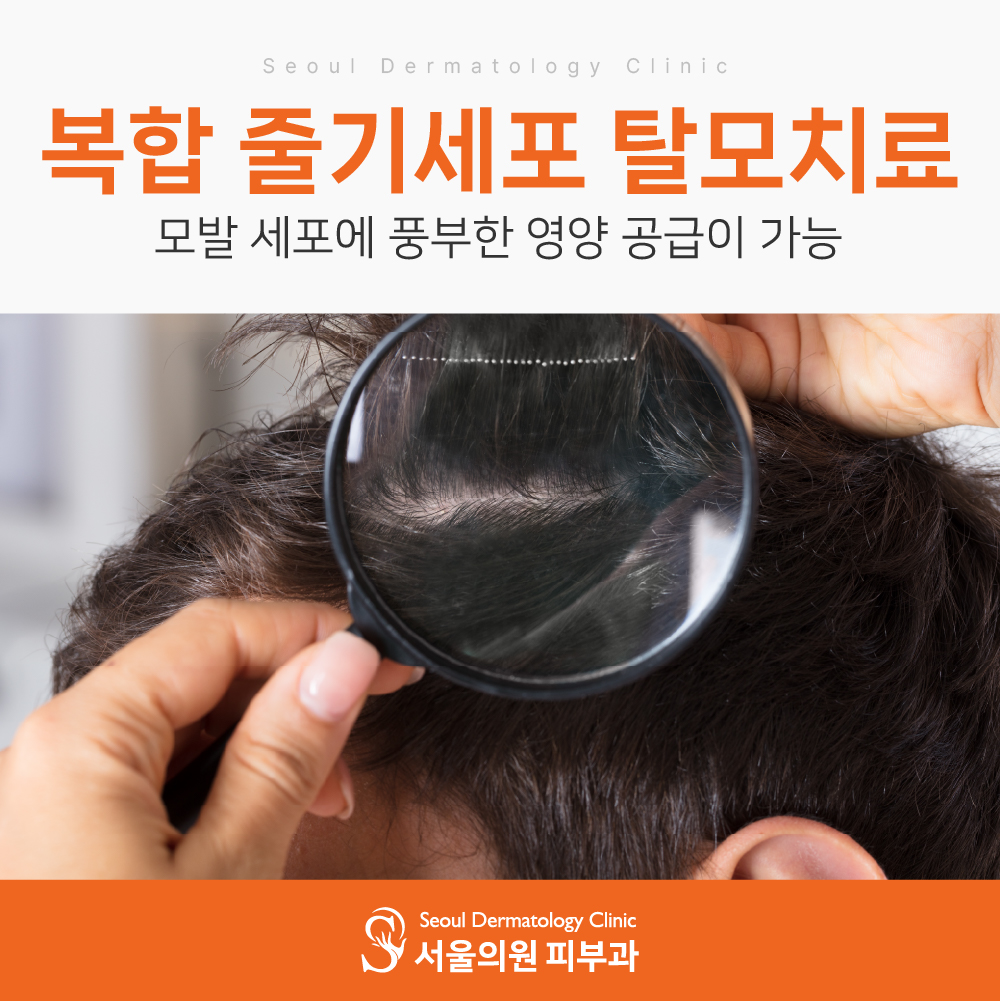 복합 줄기세포 탈모치료를 진행하게 되면 모낭세포를 새롭게 형성할 수 있고, 모발 세포에 풍부한 영양 공급이 가능하며, 모발 성장에 필요한 주요 성분을 공급하여 튼튼한 모발과 건강한 두피를 오래오래 유지할 수 있습니다.
