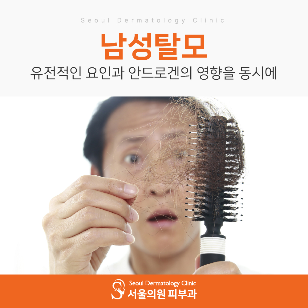 대부분의 남성탈모는 유전적인 요인과 남성호르몬인 안드로겐의 영향을 동시에 받으면서 진행됩니다.
