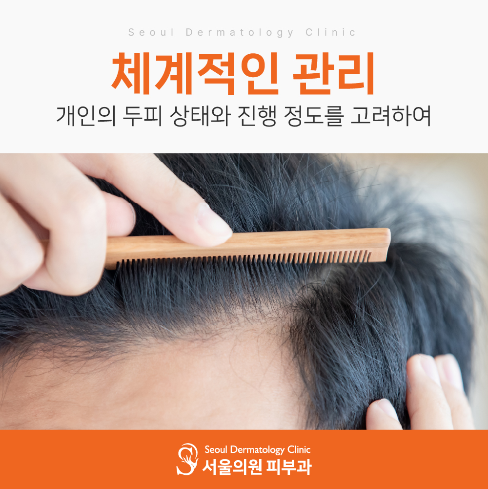 관리 방법으로는 적정 주기로 두피의 상태를 체크하고, 예방을 위한 생활습관을 병행해 주는 것이 중요합니다.