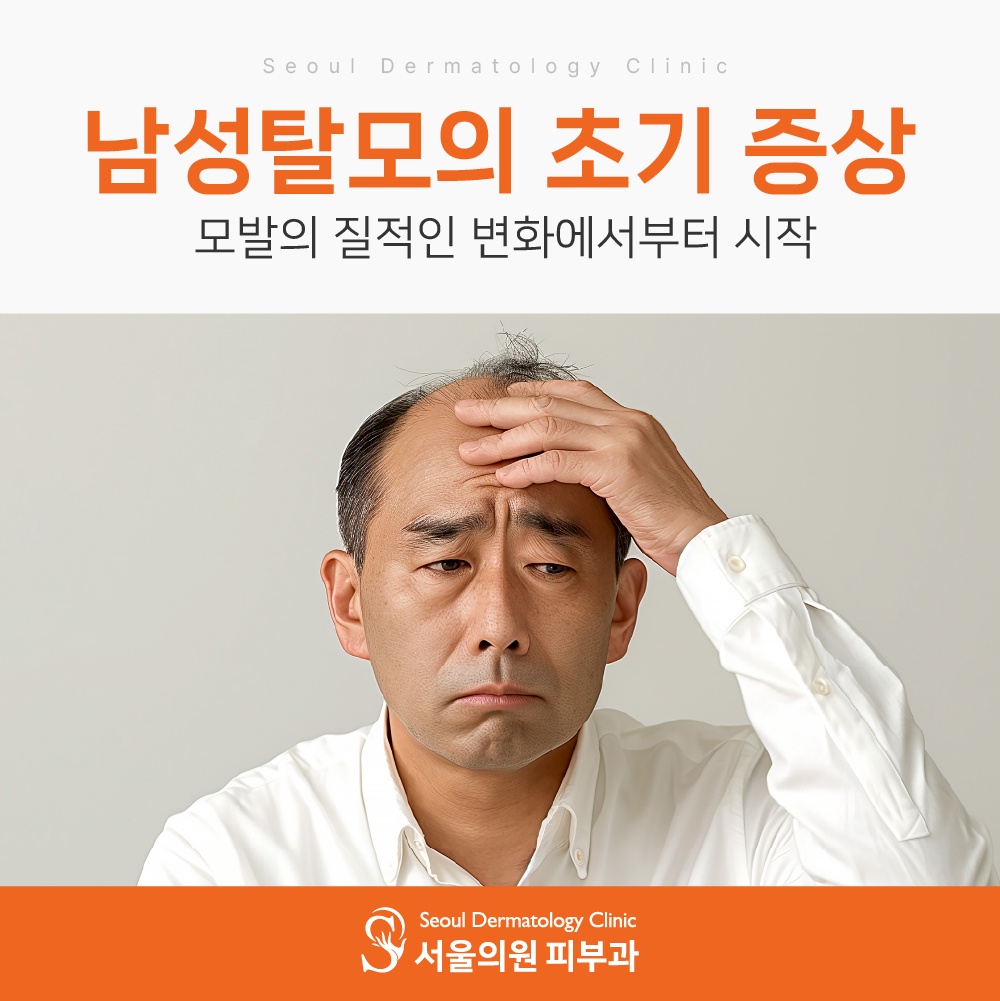 남성탈모의 초기 증상은 단순한 탈락이 아닌, 모발의 질적인 변화에서부터 시작됩니다.