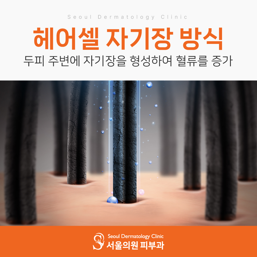 헤어셀 자기장 방식은 두피 주변에 자기장을 형성하여 혈류를 증가시키고, 모낭 세포의 활성화를 유도하여 모발의 성장을 돕는 방식을 의미합니다.