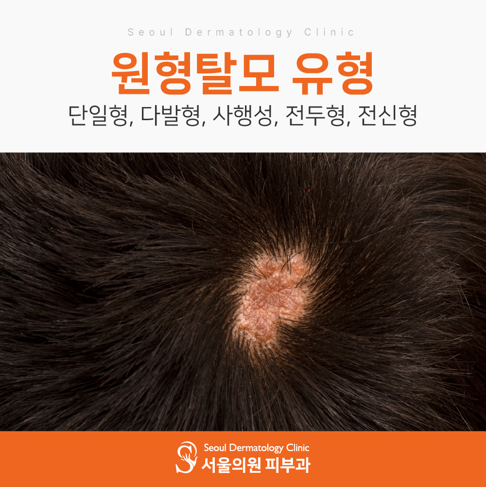 원형탈모는 형태와 진행 양상에 따라 여러 유형으로 나뉩니다.