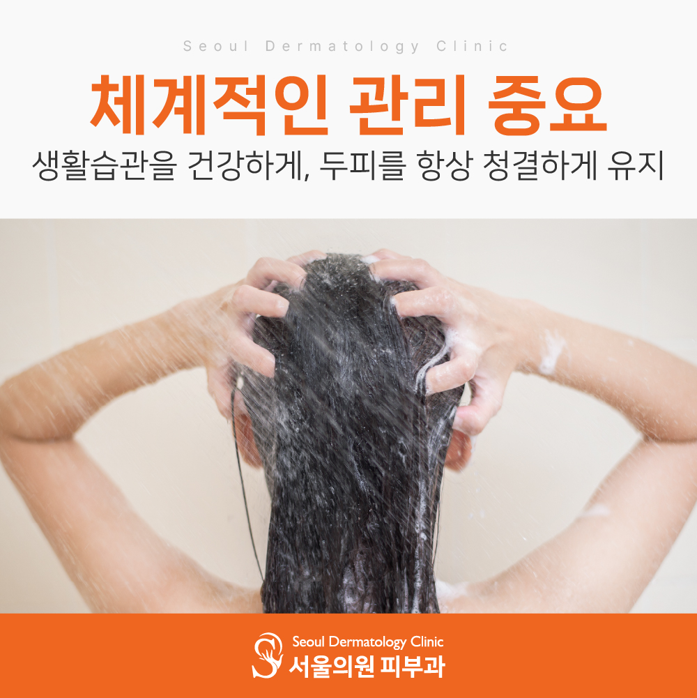 예방을 위해서는 무엇보다도 평소 두피 건강을 잘 관리하는 것이 중요하며, 지나치게 기름진 음식이나 스트레스, 음주, 흡연 등은 탈모를 악화시킬 수 있기 때문에 생활습관을 건강하게 유지해 주어야 합니다.