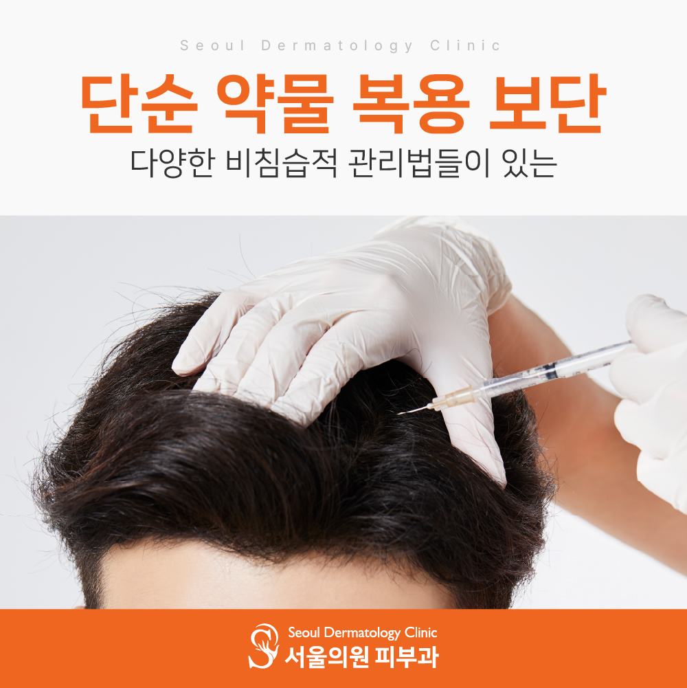 남성탈모는 단순히 약물 복용으로만 해결되지 않습니다.
