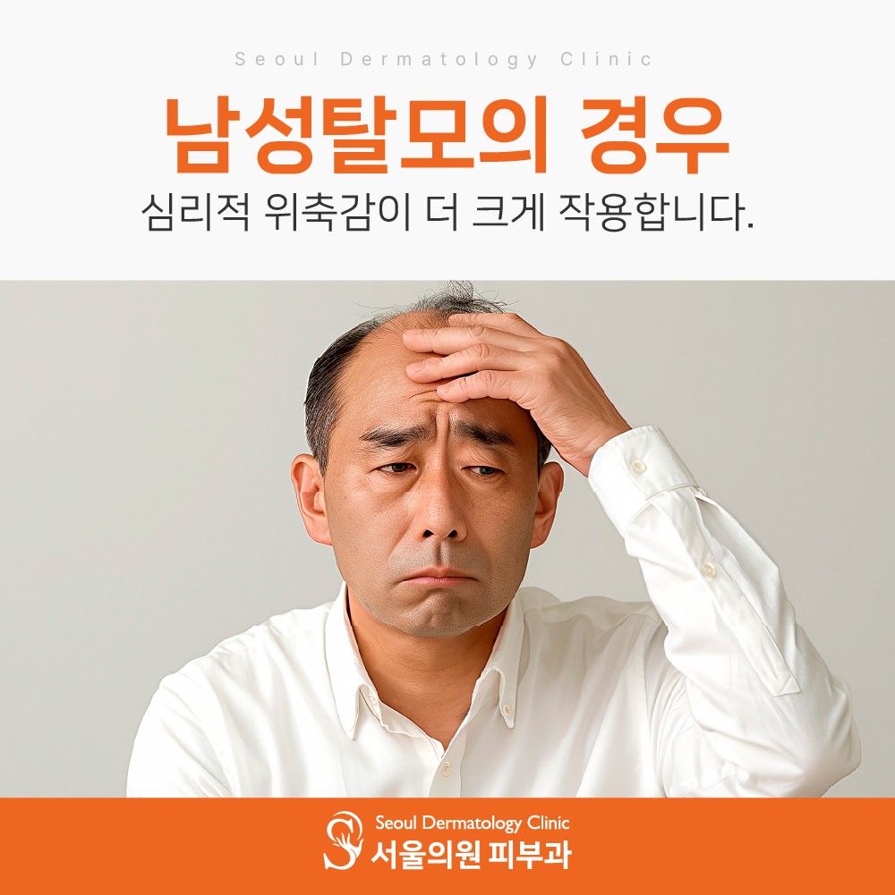 남성형 탈모는 단순한 외형 문제를 넘어 삶의 질을 떨어뜨리는 요인이 될 수 있기 때문에, 신체적 대응만큼이나 정서적 안정도 병행해서 관리해야 합니다.